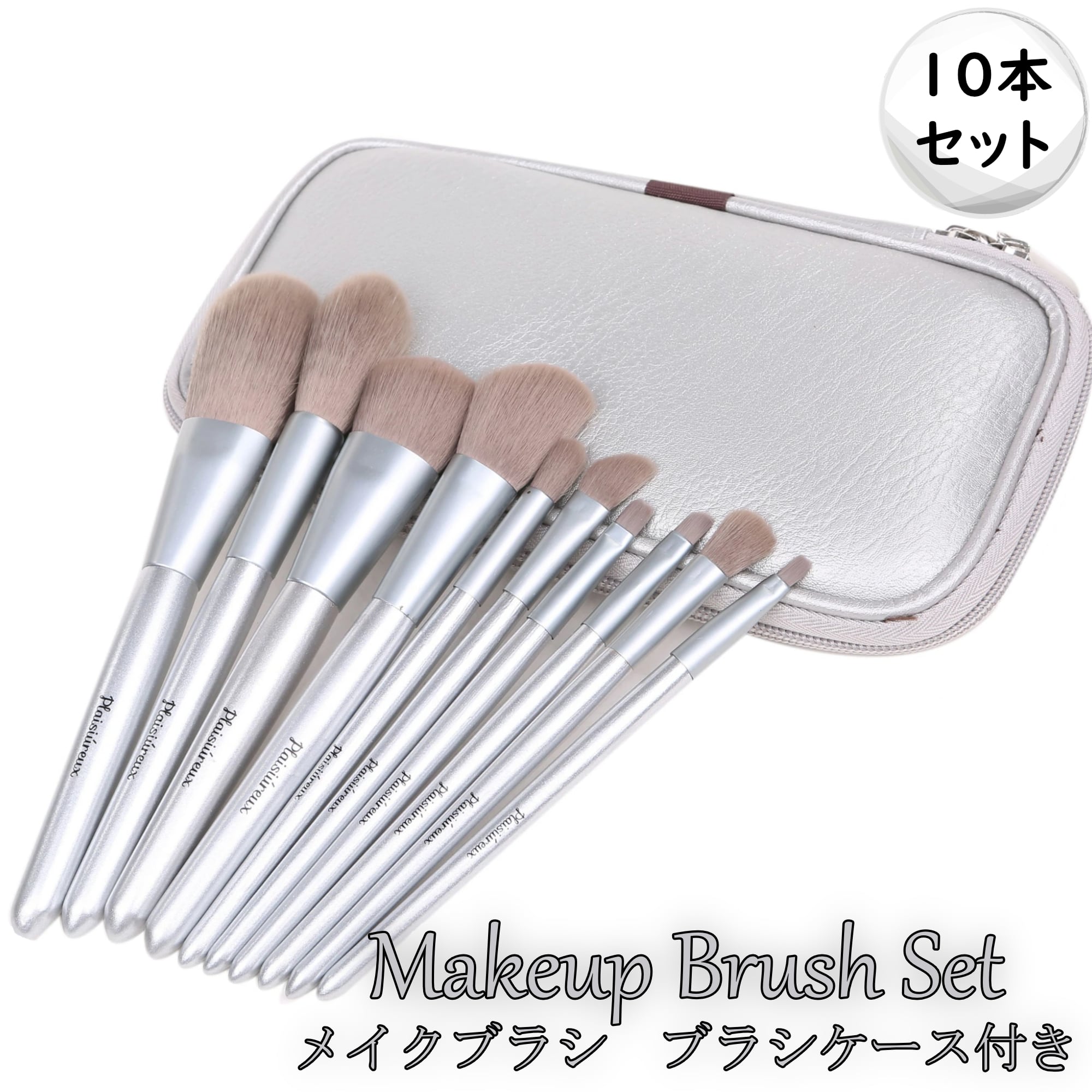 ファスナータイプのブラシケースがセットに。外は光沢のあるシルバー、中はブラックカラーでブラシが見やすいデザイン。コンパクトに収納できて持ち運びにも便利です。